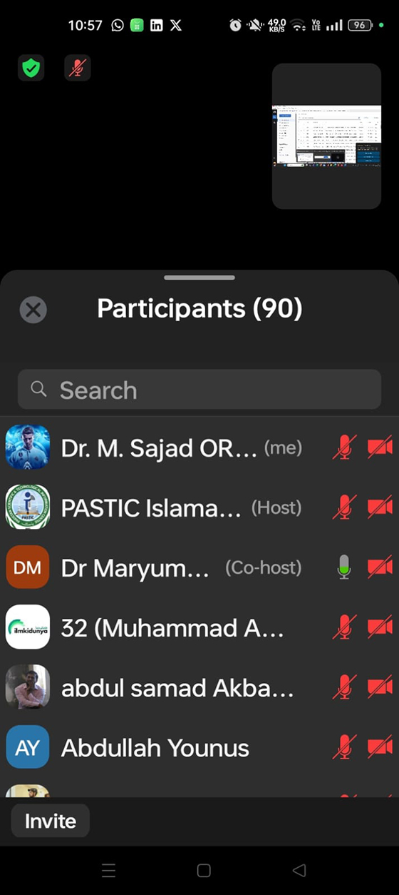 The webinar ended with a vote of thanks to Prof. Dr. M. Atif, Director ORIC-IUB, along with the entire administration of PASTIC and IUB for their support and collaboration.